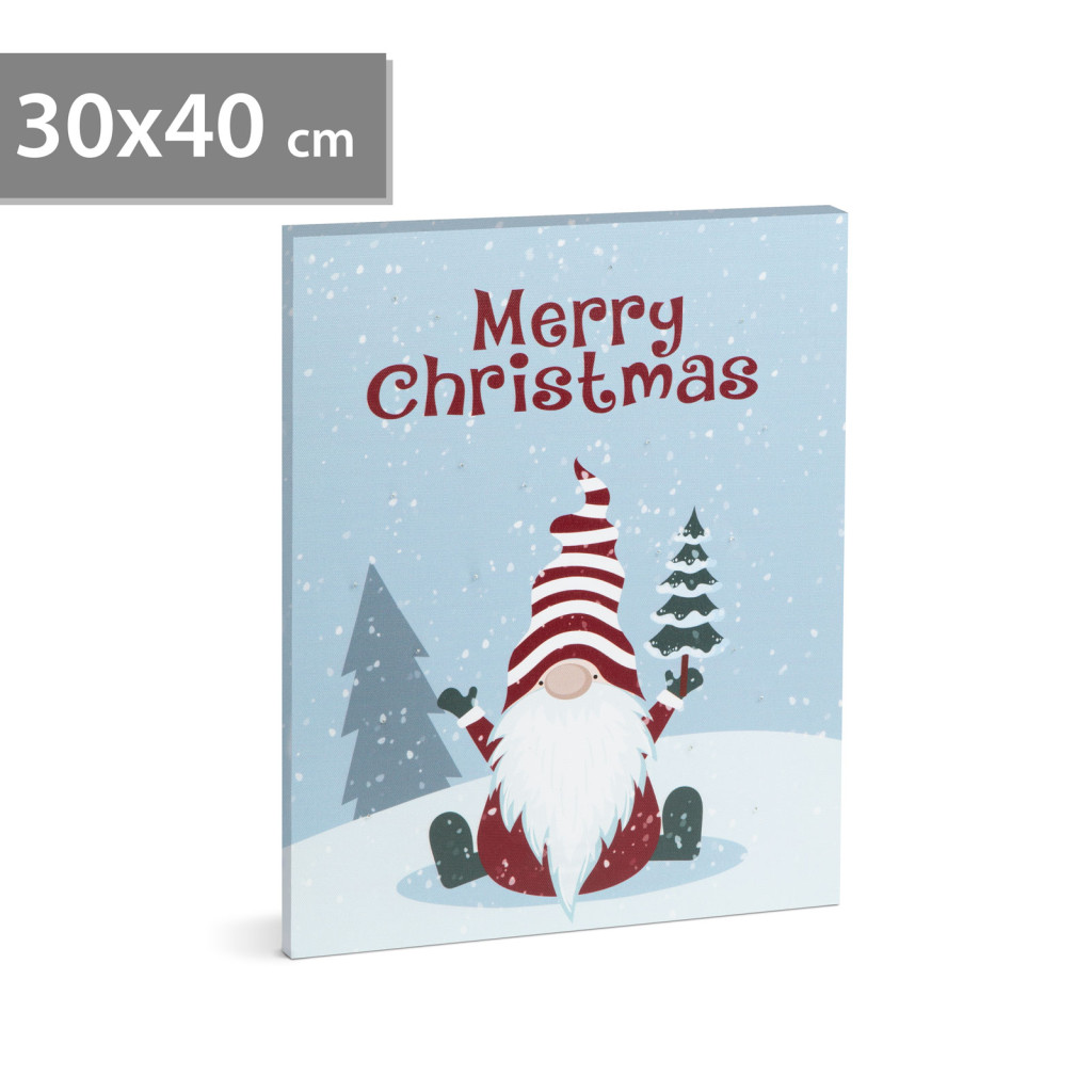 Karácsonyi LED-es hangulatkép - fali akasztóval, 2 x AA, 30 x 40 cm
