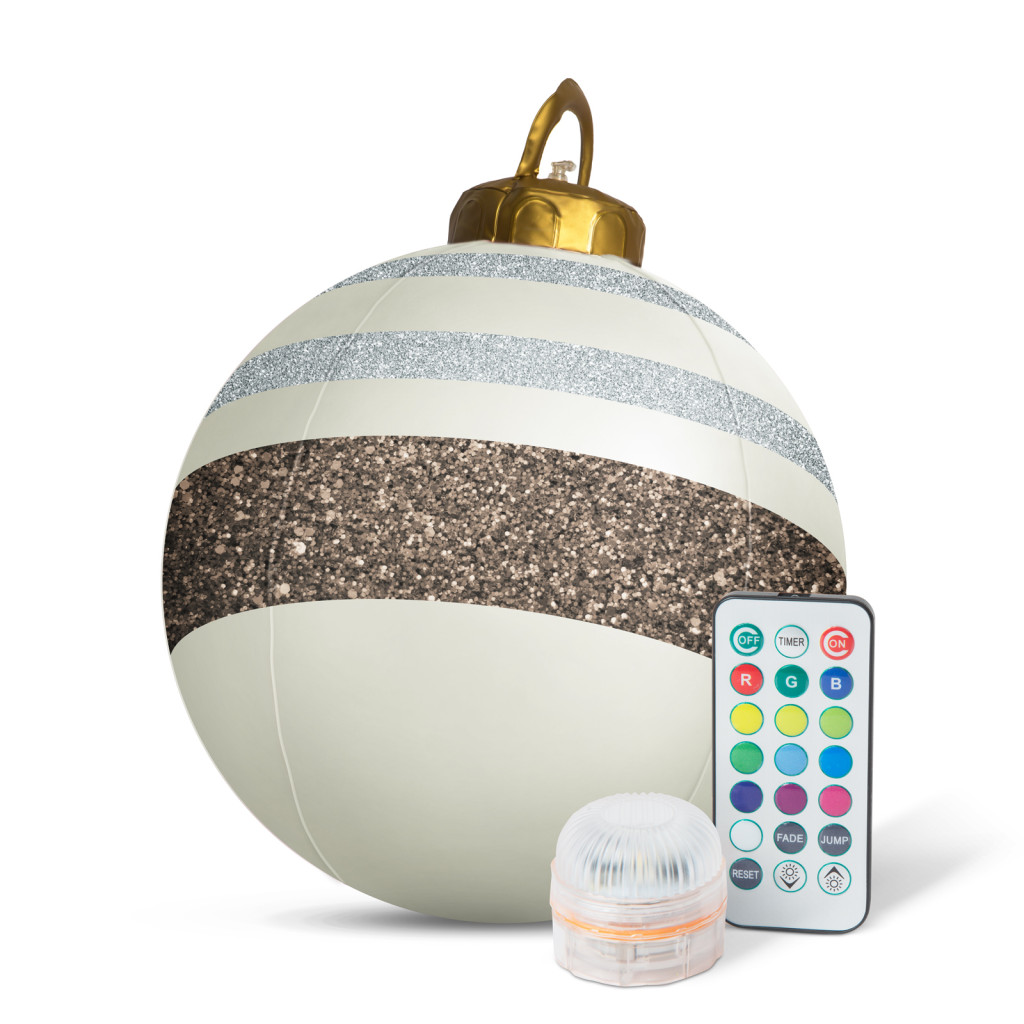 A karácsonyi időszak legújabb, innovatív dekoreszköze a felfújható, megvilágítható díszgömb. Nagy méretének köszönhetően elhelyezhető nagyobb kertekben is, fára akasztva vagy akár medence vízfelszínén is jól mutat. A díszgömb aljába rakható LED-es egység, csodálatos fénnyel világítja meg a gömb belsejét. A LED-ek energiaellátásáról 2 x CR2450 elem gondoskodik. Az Önnek tetsző világítási módot a tartozék távirányító segítségével állíthatja be.